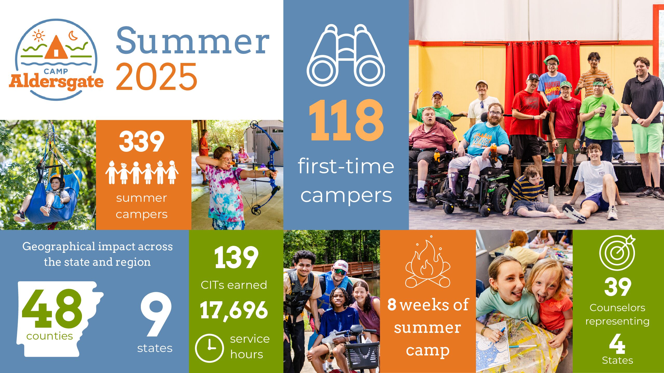 Camp Aldersgate is one of eight camps in Arkansas accredited by the American Camp Association, and it continues to be the only accredited camp in Arkansas designed for children with special needs.